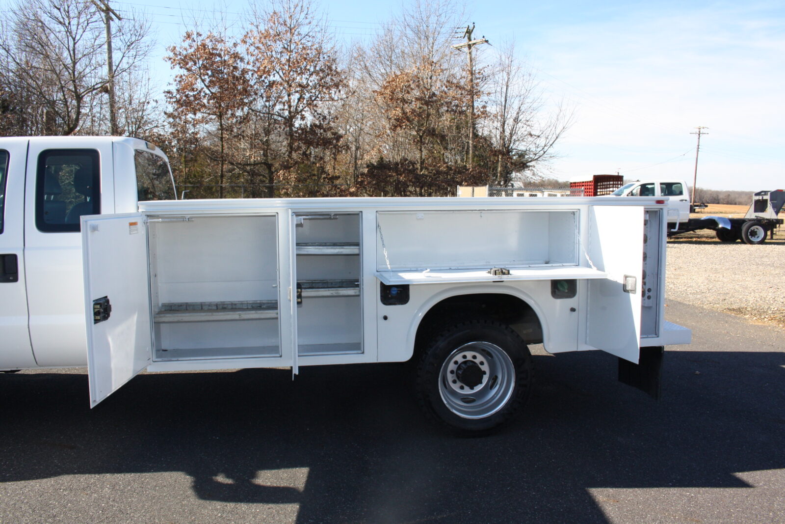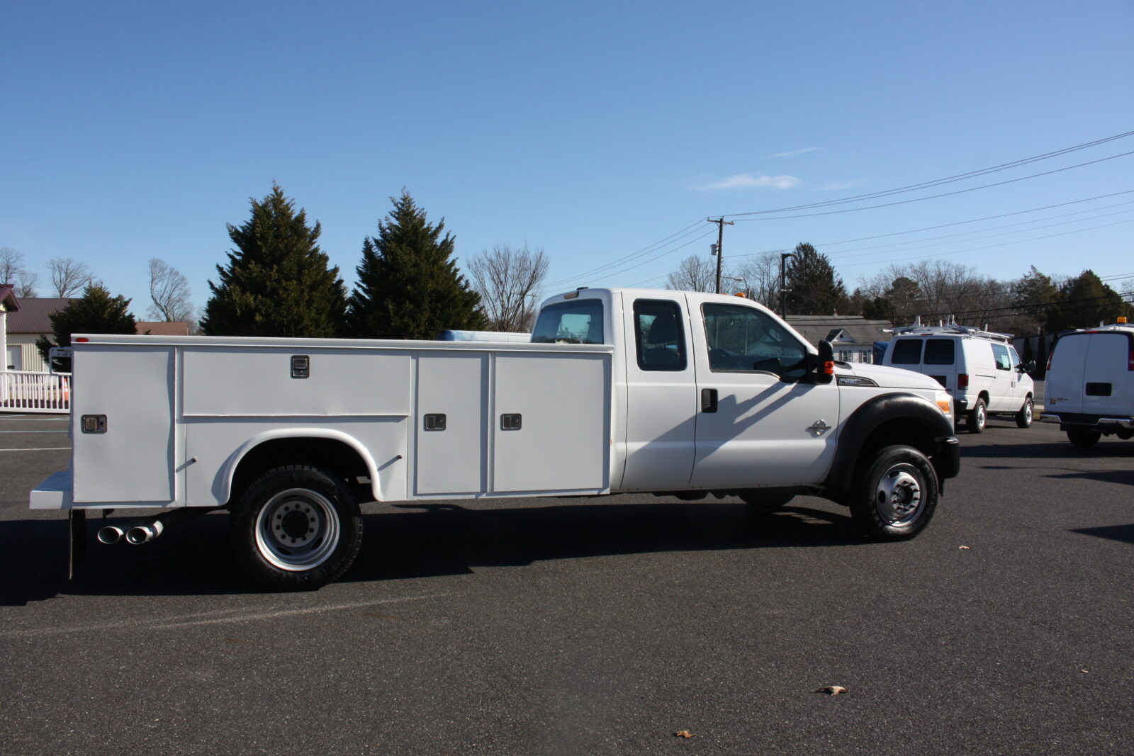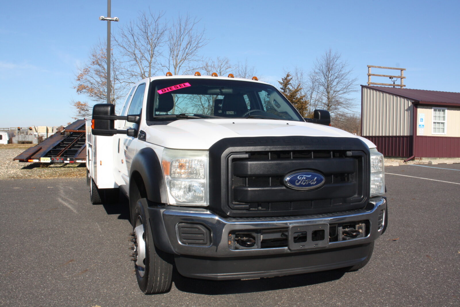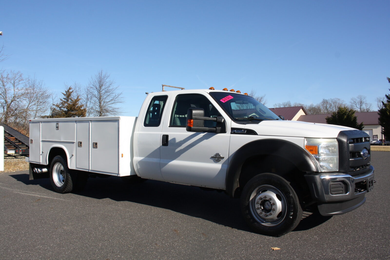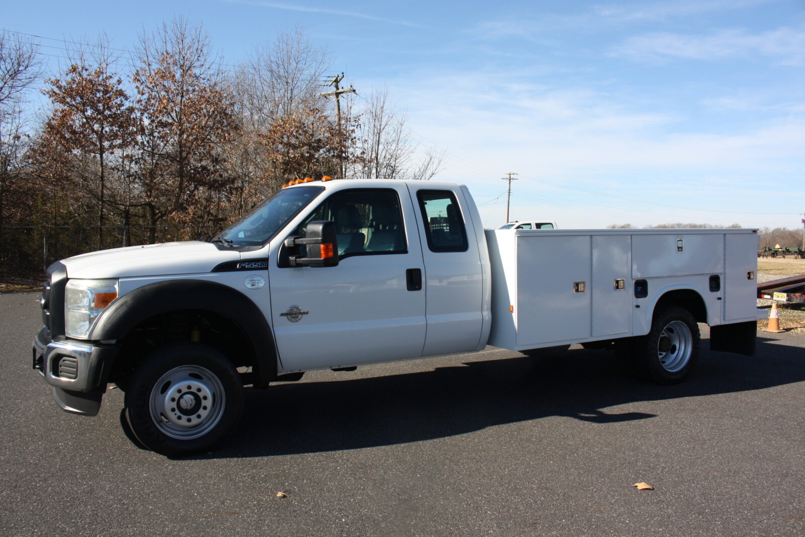 CLEAN RUST FREE FORD F550 OPEN UTILITY TRUCK WITH A KNAPHEIDE 11FT OPEN UTILITY BODY. POWERED BY THE 6.7 TURBO DIESEL AND 4X4! 6 BRAND NEW TIRES, FULLY SERVICED, ENGINE, TRANSMISSION, TRANSFER CASE AND DIFFERENTIALS. EXTENDED CAB AND ONLY 52,000 MILES! RUNS SMOOTH AND STRONG AND READY TO WORK FOR YOU!